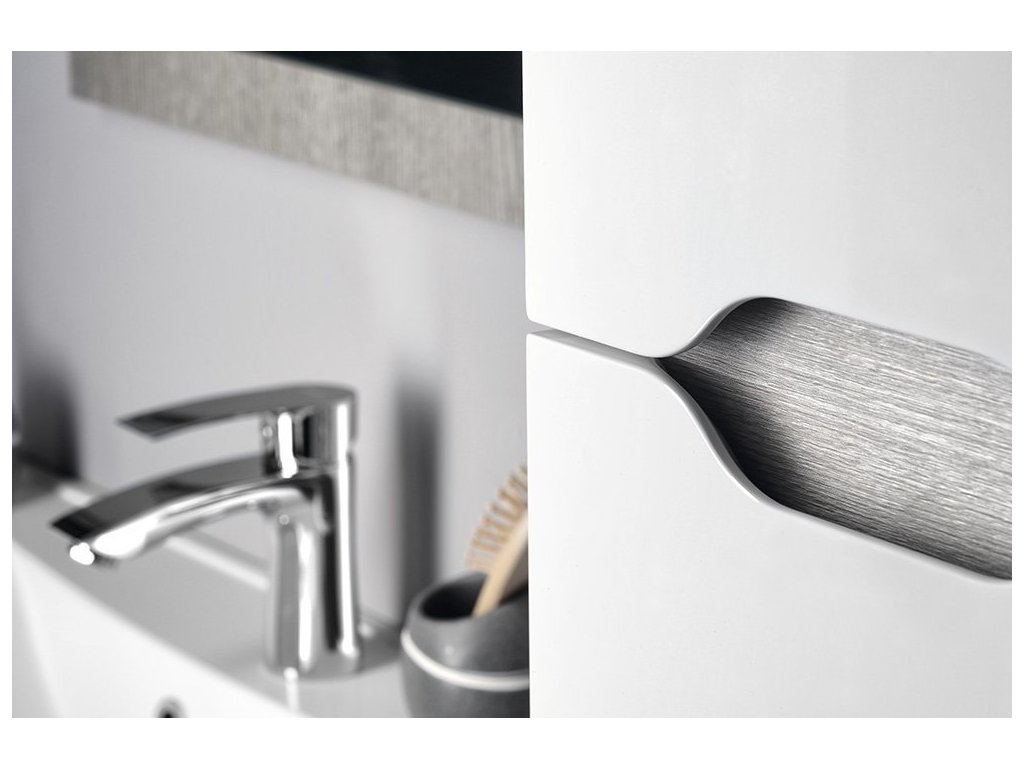 Designově zdařilá série koupelnového nábytku WAVE vyniká nadčasovou elegancí. Jednotícím prvkem je vlna, která probíhá čelní plochou nábytku, umožňuje pohodlné otevírání a zároveň koresponduje s vnitřní částí umyvadla LUCIOLA z litého mramoru.