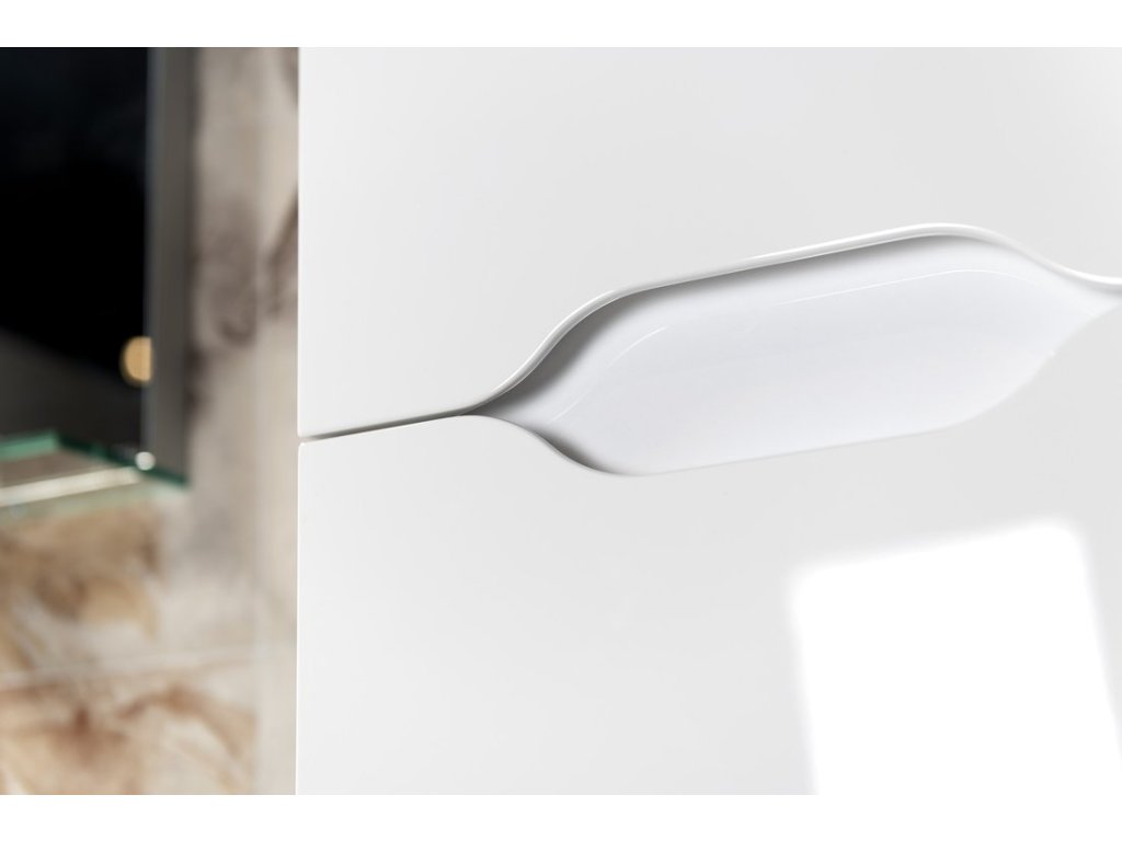 Designově zdařilá série koupelnového nábytku WAVE vyniká nadčasovou elegancí. Jednotícím prvkem je vlna, která probíhá čelní plochou nábytku, umožňuje pohodlné otevírání a zároveň koresponduje s vnitřní částí umyvadla LUCIOLA z litého mramoru.