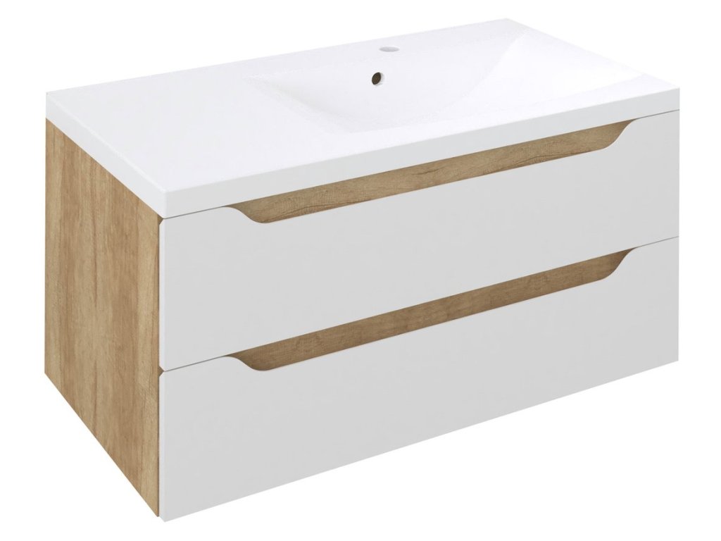 WAVE umyvadlová skříňka 89,7x45x47,8cm, pravá, bílá/dub alabama