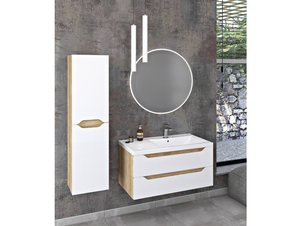 WAVE umyvadlová skříňka 89,7x45x47,8cm, pravá, bílá/dub cuneo