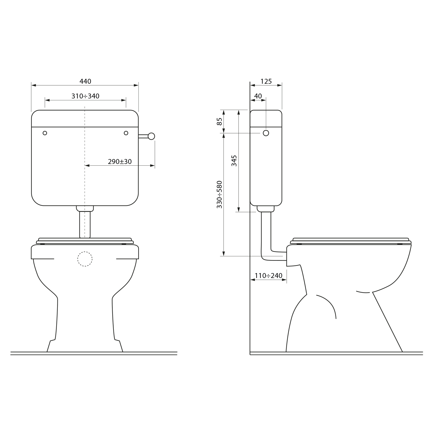 WC plastová nádržka s DUAL tlačítkem, 4-8 L, bílá