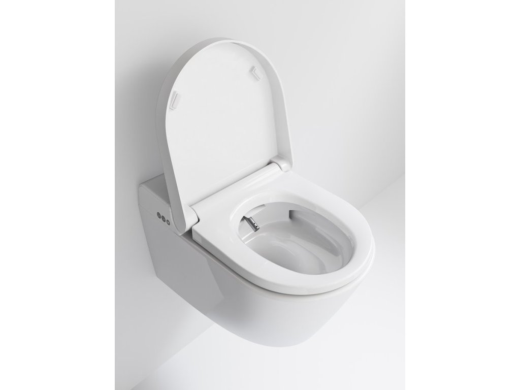 Závěsná toaleta WCLEAN nabízí nový komfort hygieny. Po použití toalety se na povel vysune oplachová tryska s možností nastavení tlaku a teploty vody.