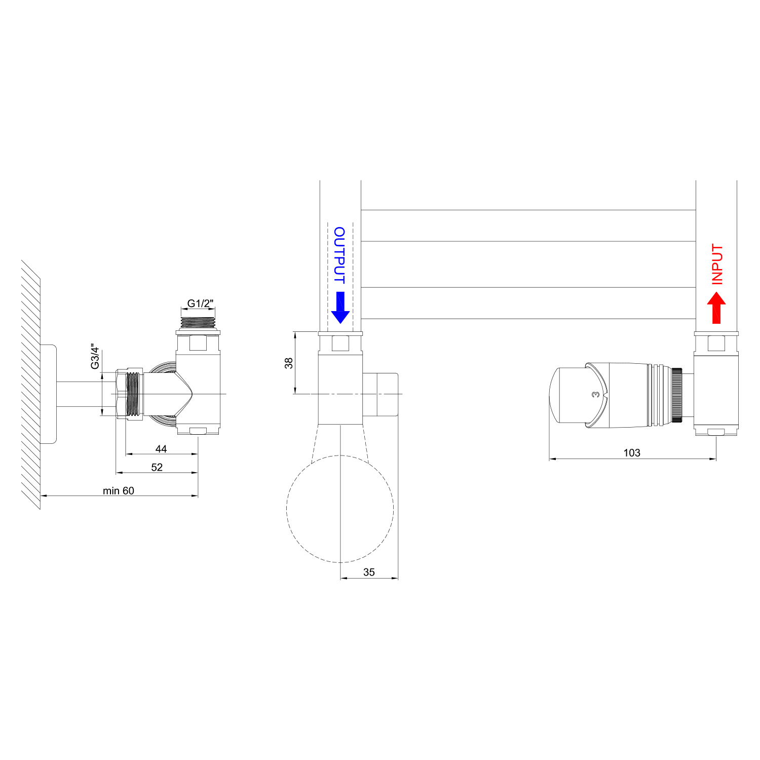 WICHER ECK COMBI připojovací sada termostatická rohová, černá mat
