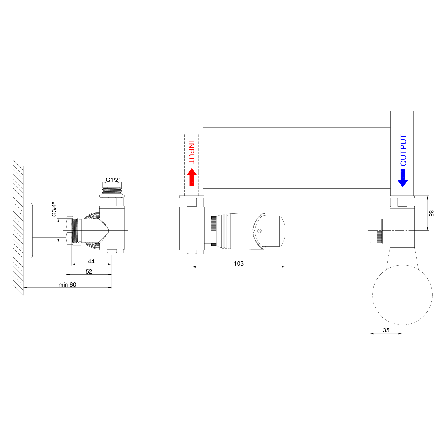 Možnost přehození termostatické hlavice na levou stranu.