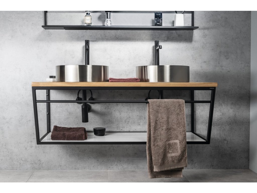 Desky doporučujeme doplnit umyvadly na postavení. Otvor pro baterii a výpust lze vyvrtat v místě instalace nebo na přání dle dodaného výkresu přímo ve výrobě.