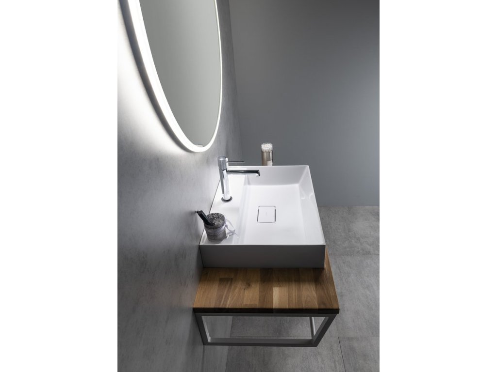 Desky doporučujeme doplnit umyvadly na postavení. Otvor pro baterii a výpust lze vyvrtat v místě instalace nebo na přání dle dodaného výkresu přímo ve výrobě.