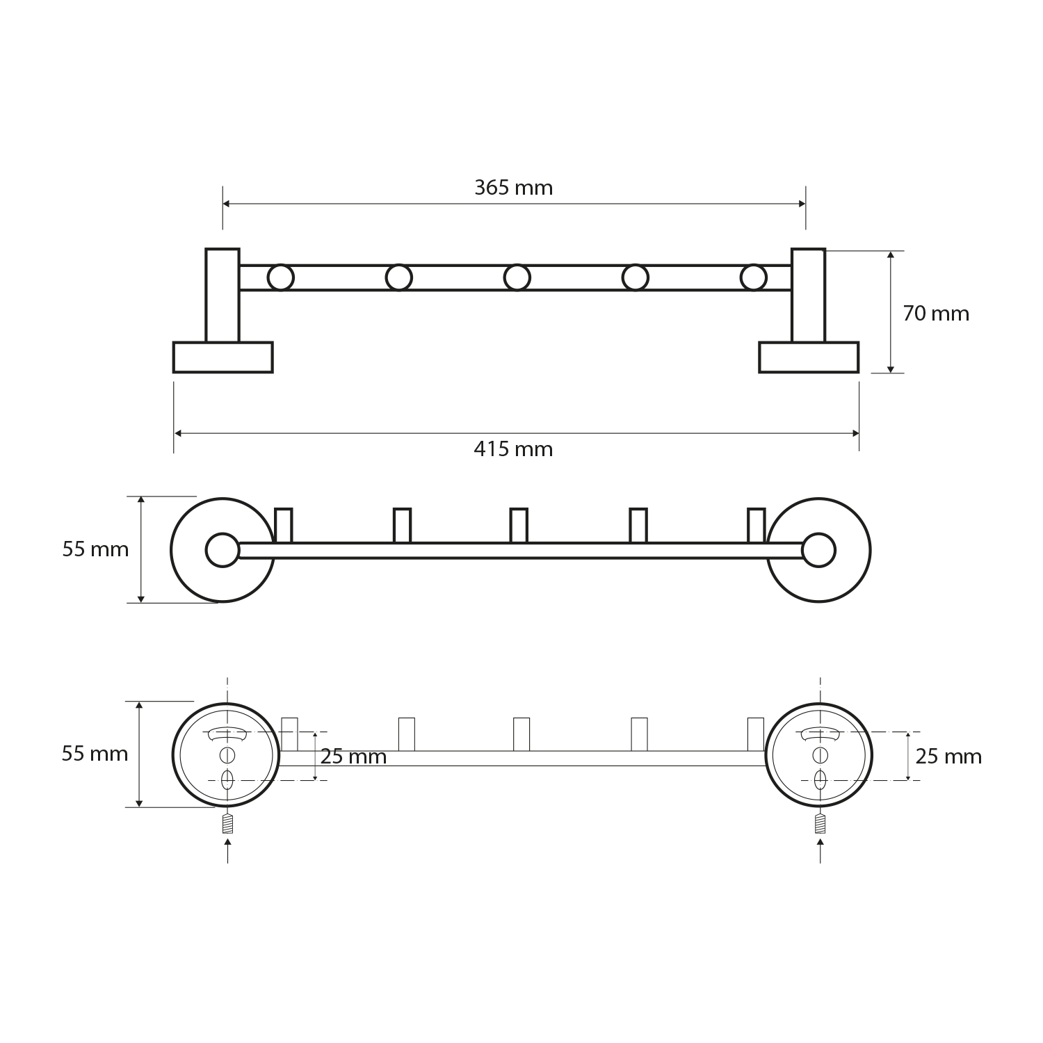 X-ROUND E hrazda s 5 věšáčky 395mm, chrom