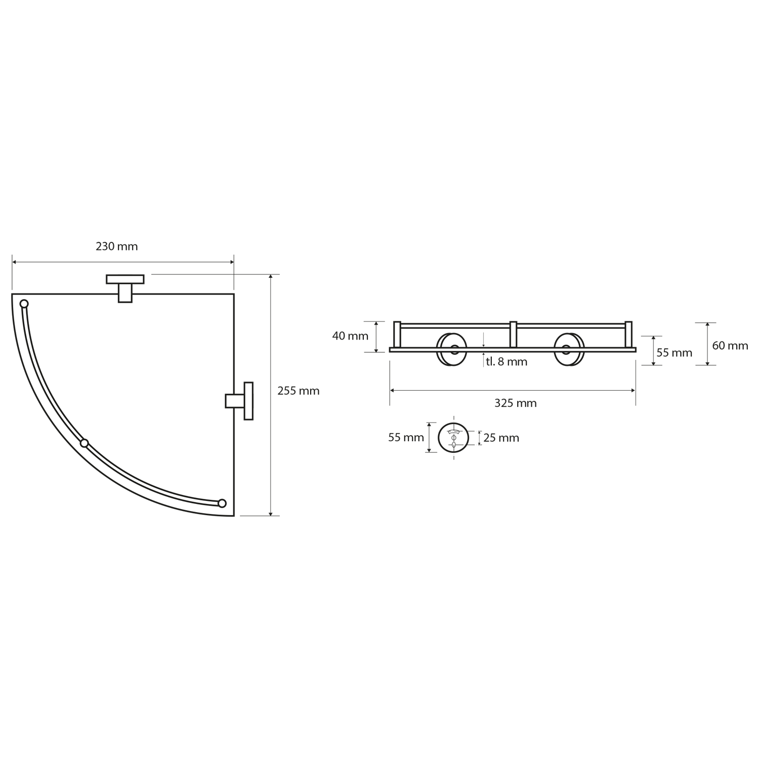X-ROUND E skleněná polička rohová s hrazdou 255x60x230mm, chrom