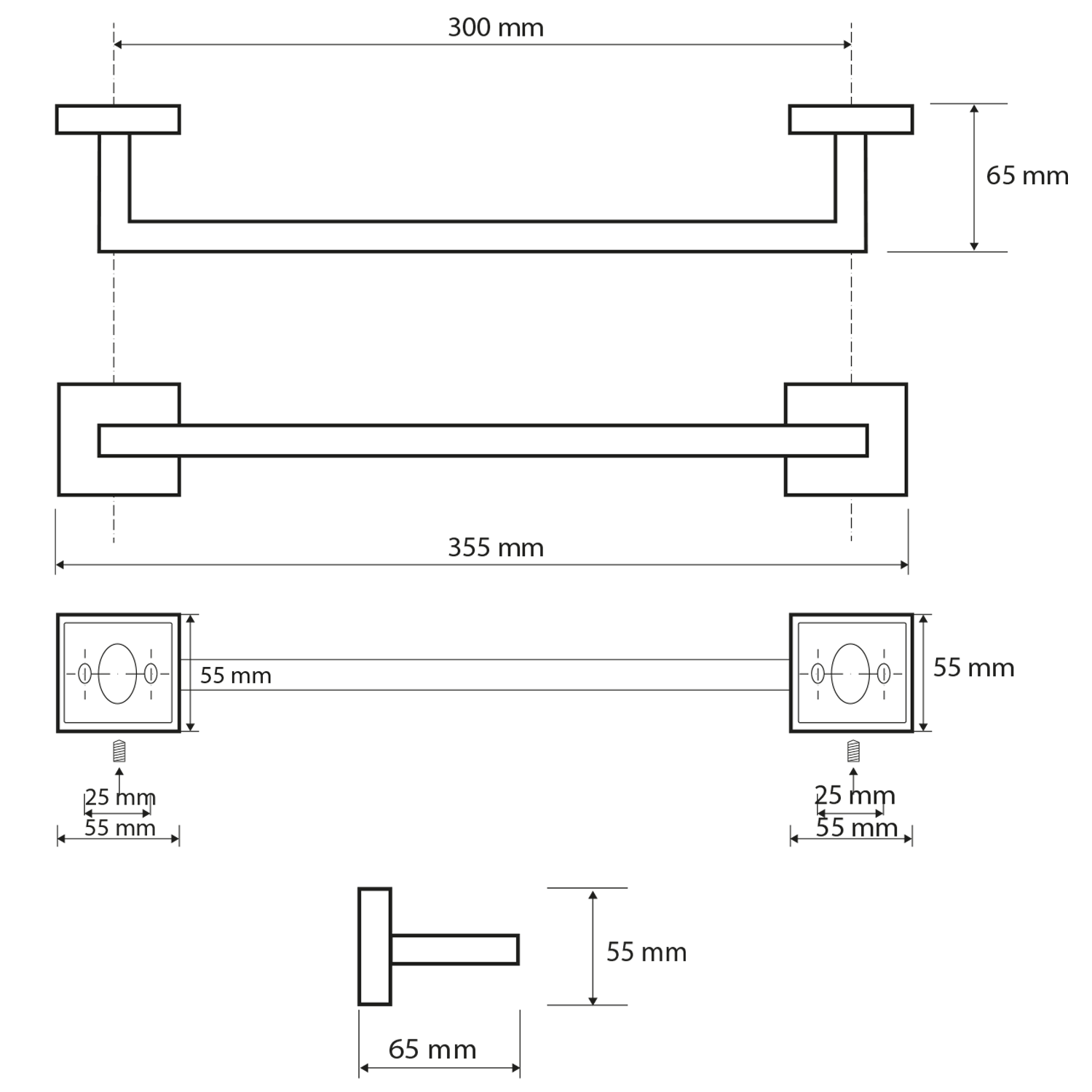 X-SQUARE držák ručníků 300mm, chrom