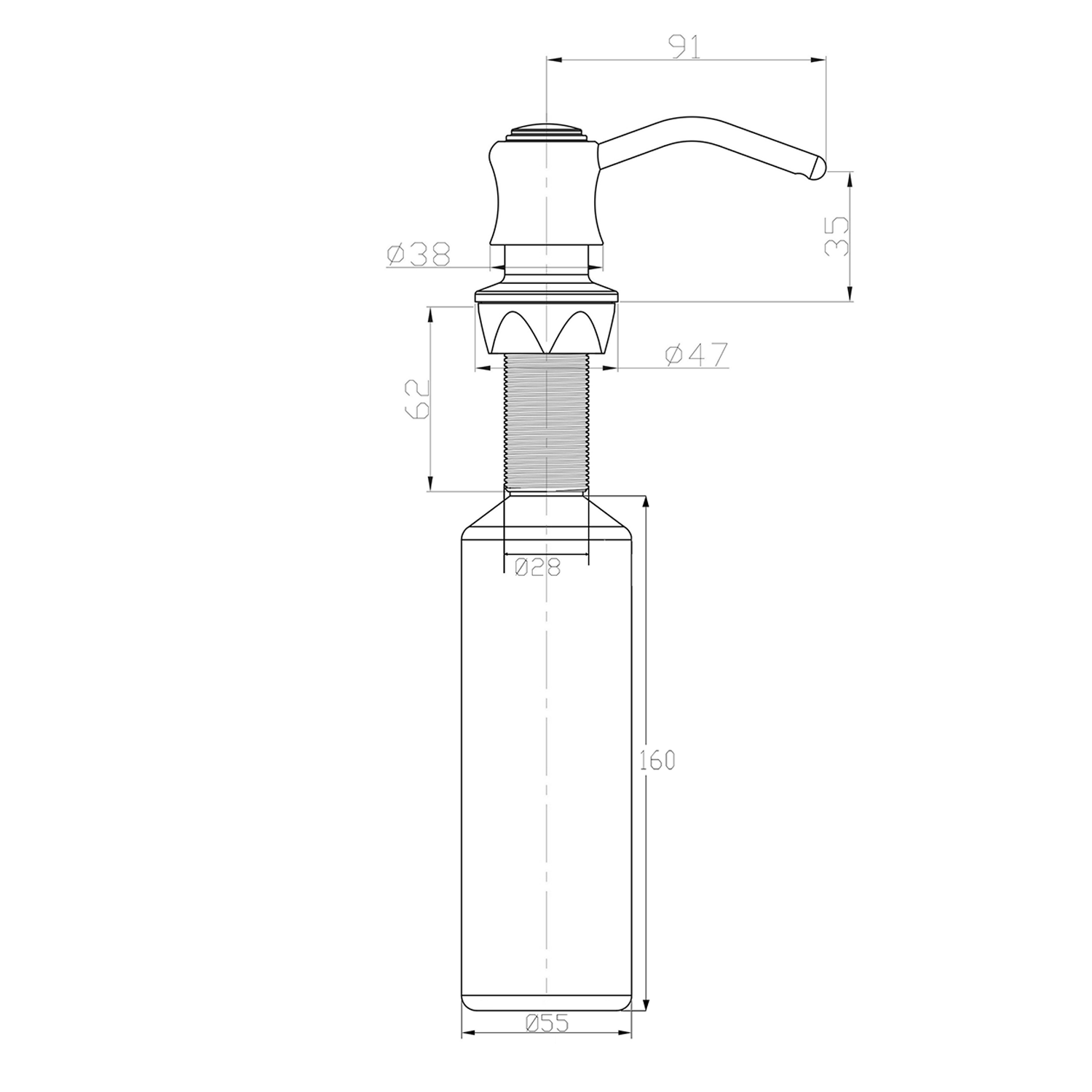 Zápustný dávkovač mýdla a saponátu s možností instalace do umyvadla místo stojánkové baterie, nebo do desky vedle umyvadla či dřezu.