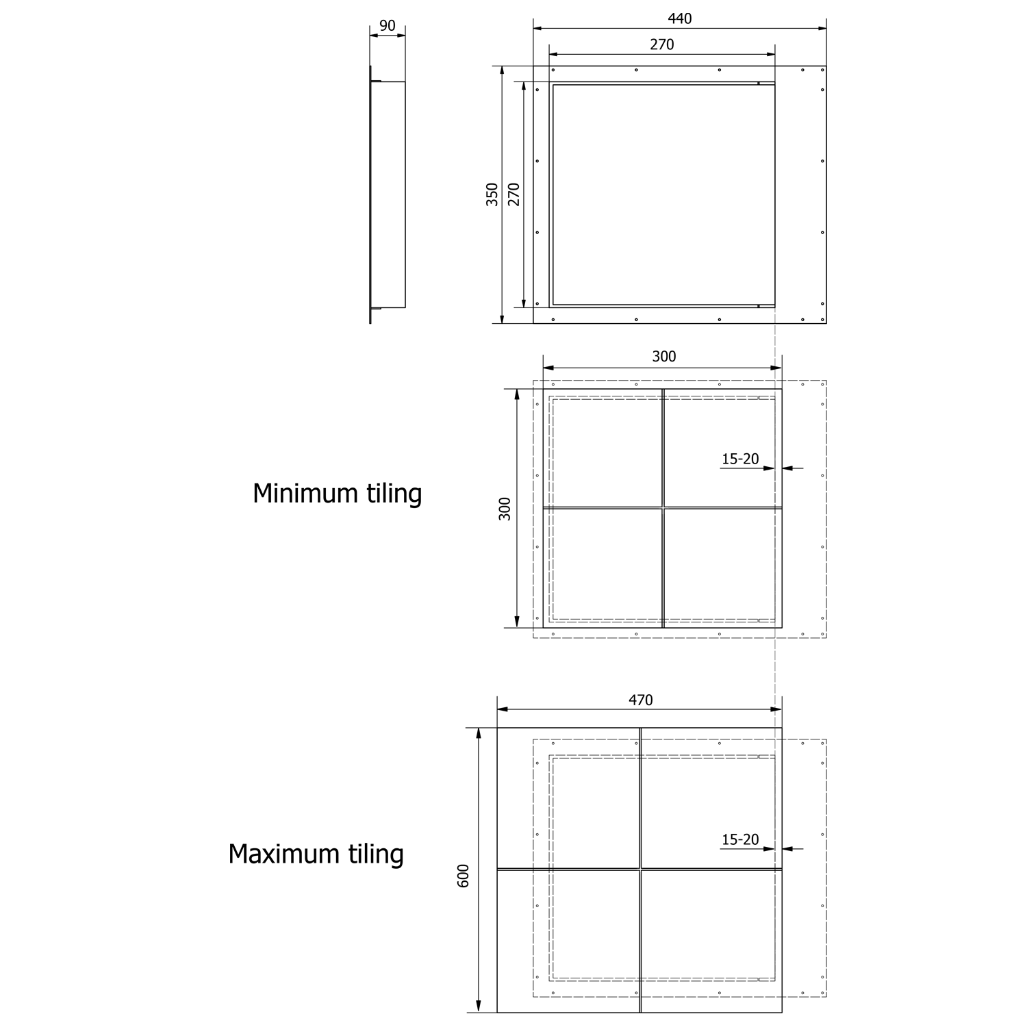 Balení obsahuje: dvířka v rámu, instalační prvky, ukončovací PVC lišta 8 a 10 mm.
