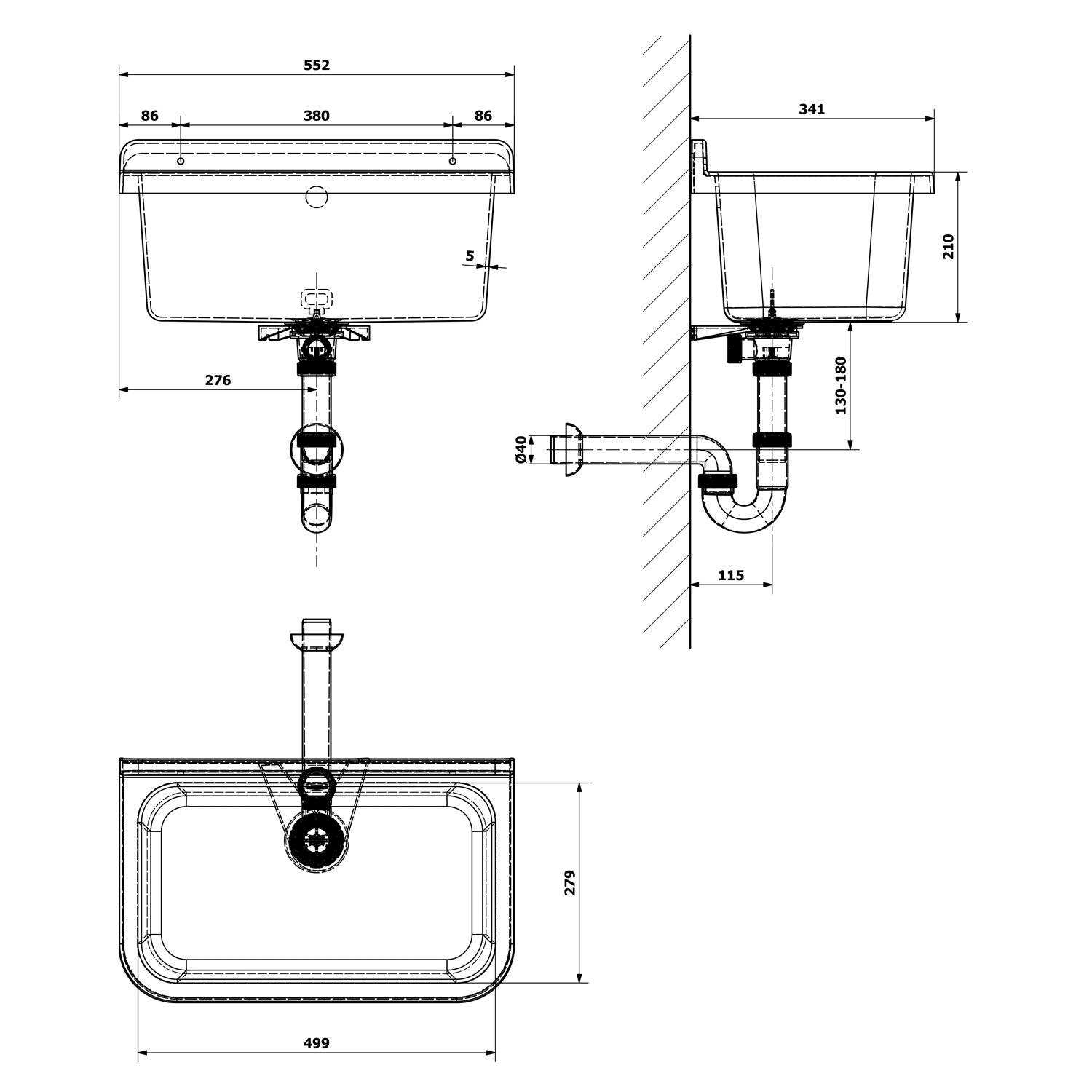- Výpust a sifon s přepadovou soupravou jsou součástí balení.