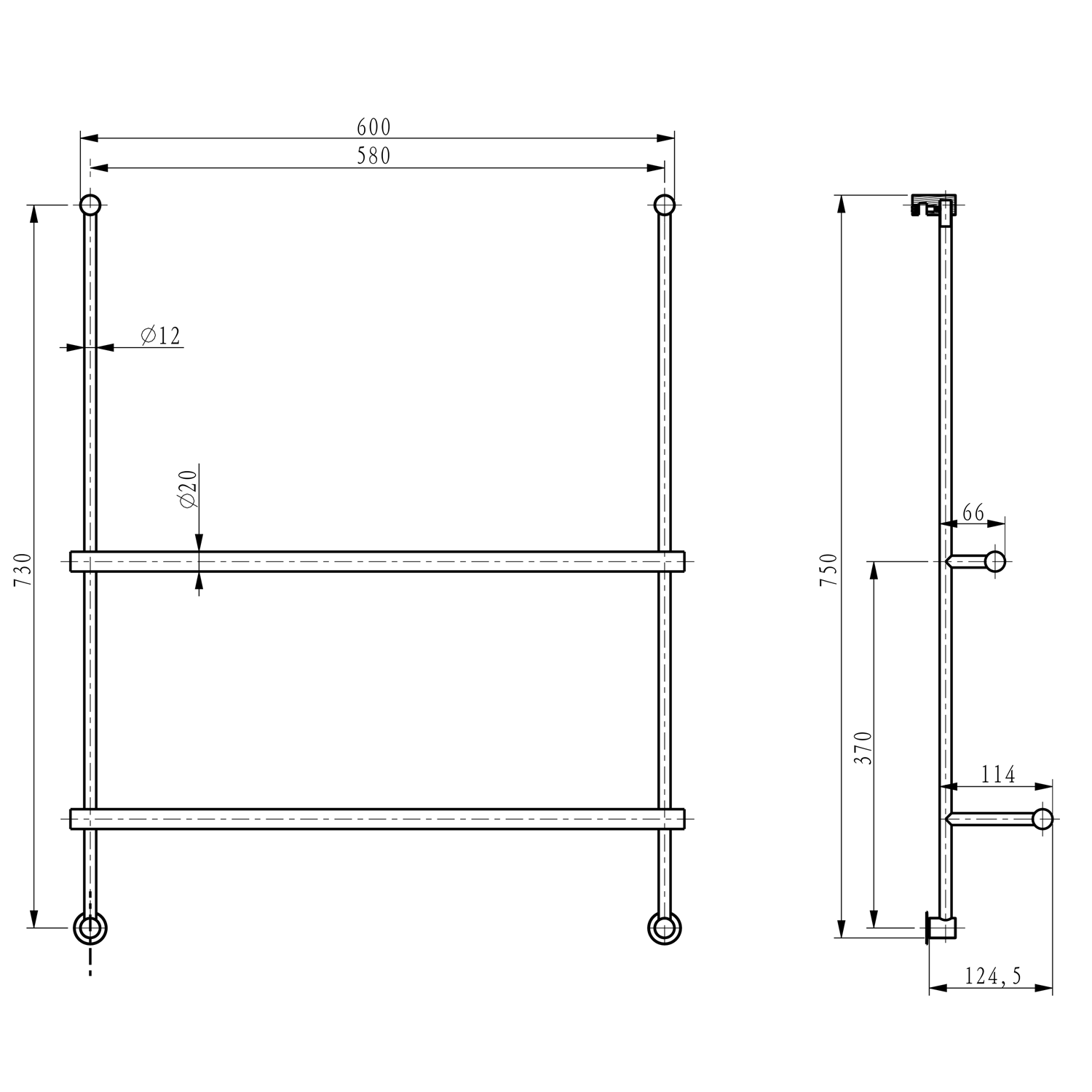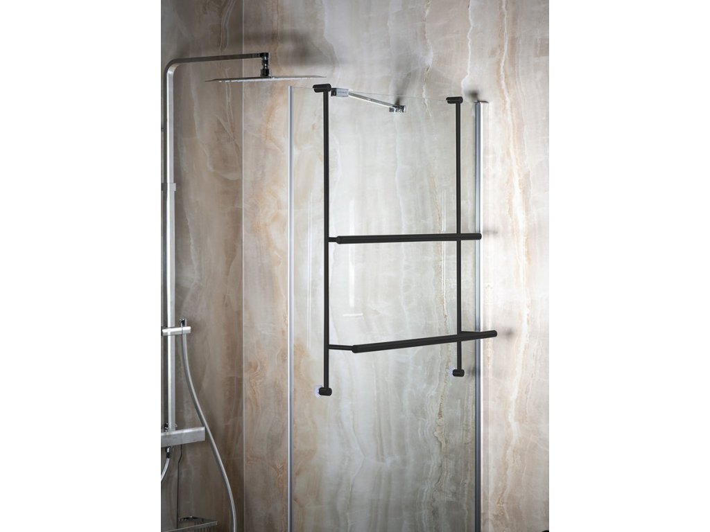 Závěsný držák ručníků na sprchovou zástěnu 600x730x125mm, černá mat