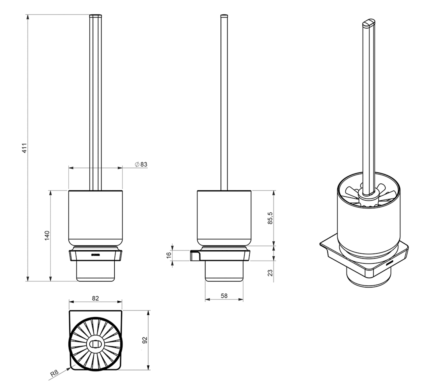 ZEN WC štětka závěsná, mléčné sklo, černá mat