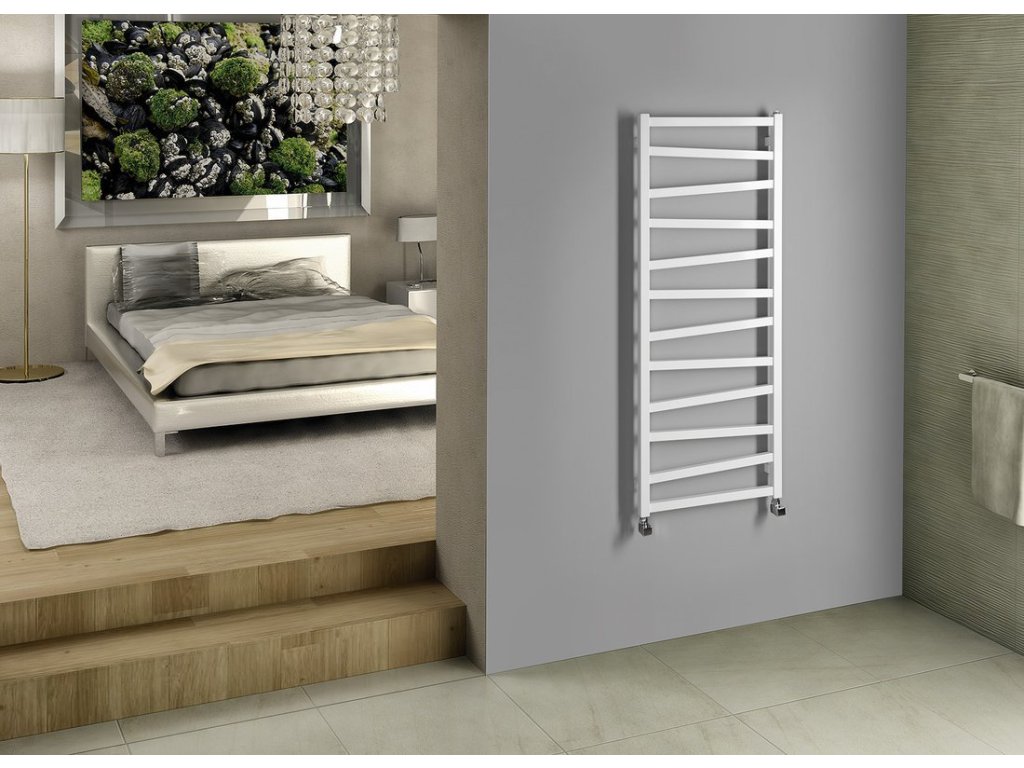 Otopné těleso s různoběžnými středovými trubkami podtrhne design koupelny. Možná kombinace ústředního a elektrického vytápění. V nabídce v barvách bílá, strukturální antracit a černá mat.