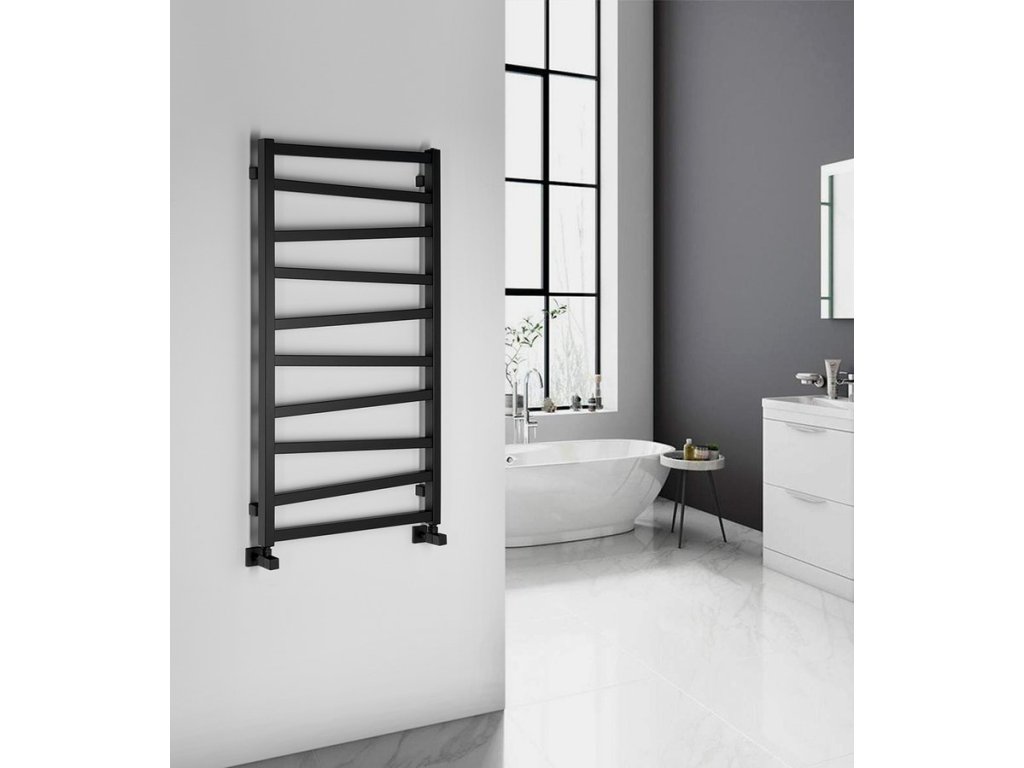 Otopné těleso s různoběžnými středovými trubkami podtrhne design koupelny. Možná kombinace ústředního a elektrického vytápění. V nabídce v barvách bílá, strukturální antracit a černá mat.