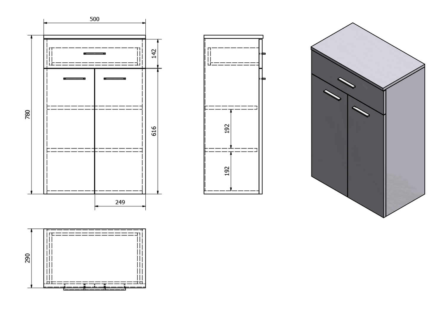 | Typ skříňky: | Zásuvky a dvířka |