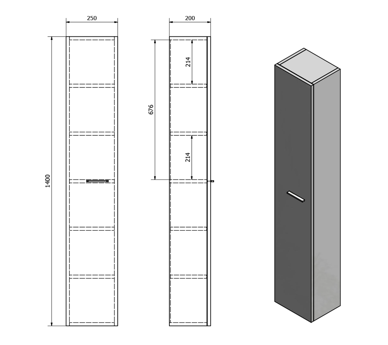 ZOJA/KERAMIA FRESH skříňka vysoká 25x140x20cm, dub platin