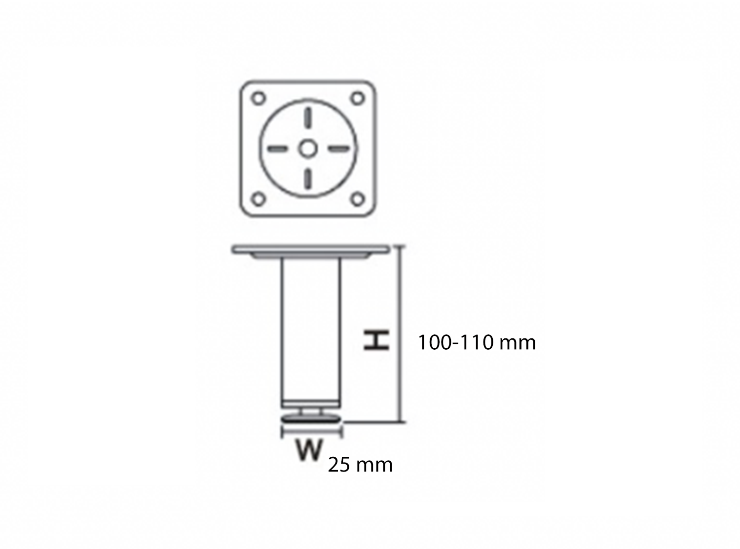 ZOJA výškově stavitelná nožička, výška 100-110mm, chrom