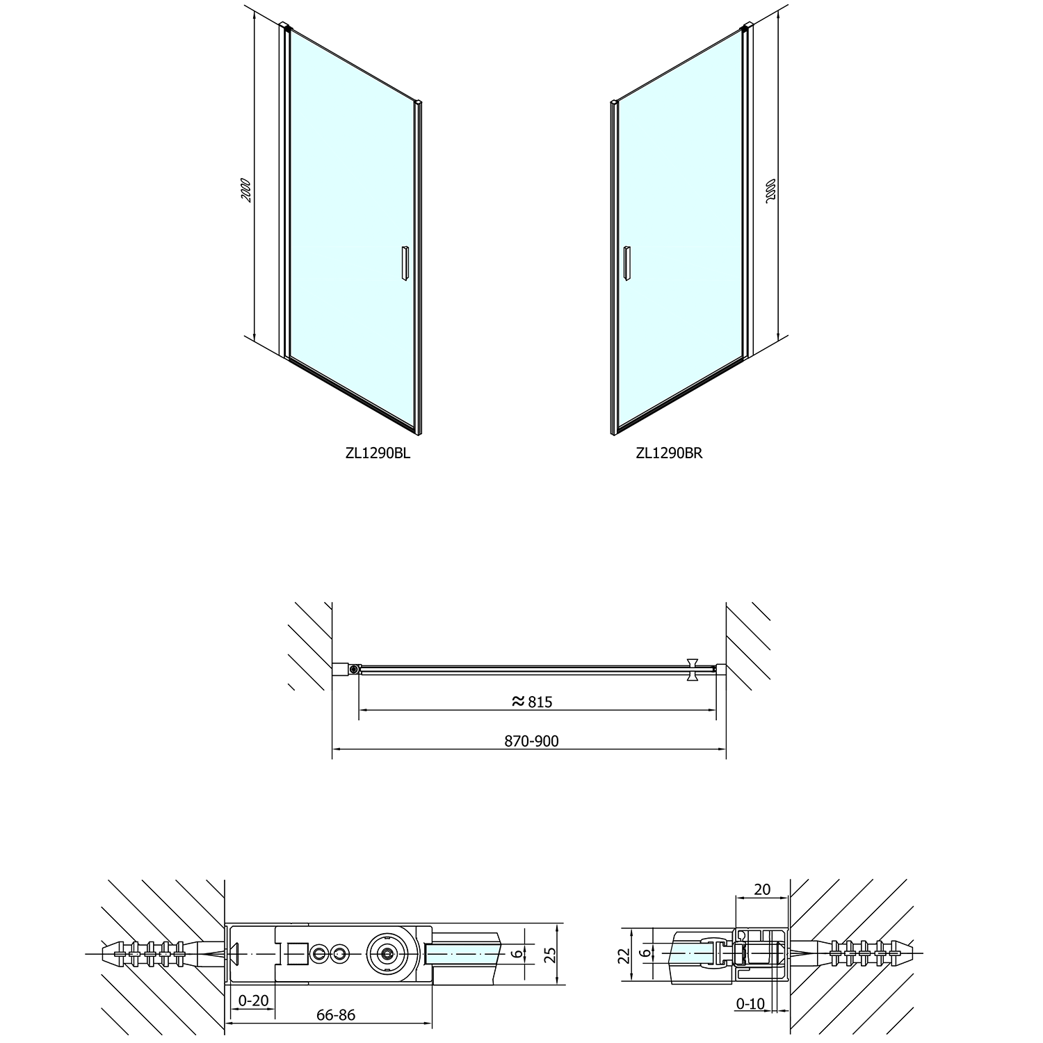 - Dveře je možno instalovat do niky nebo v kombinaci s boční stěnou, umožňují variabilní instalaci s levým nebo pravým otevíráním