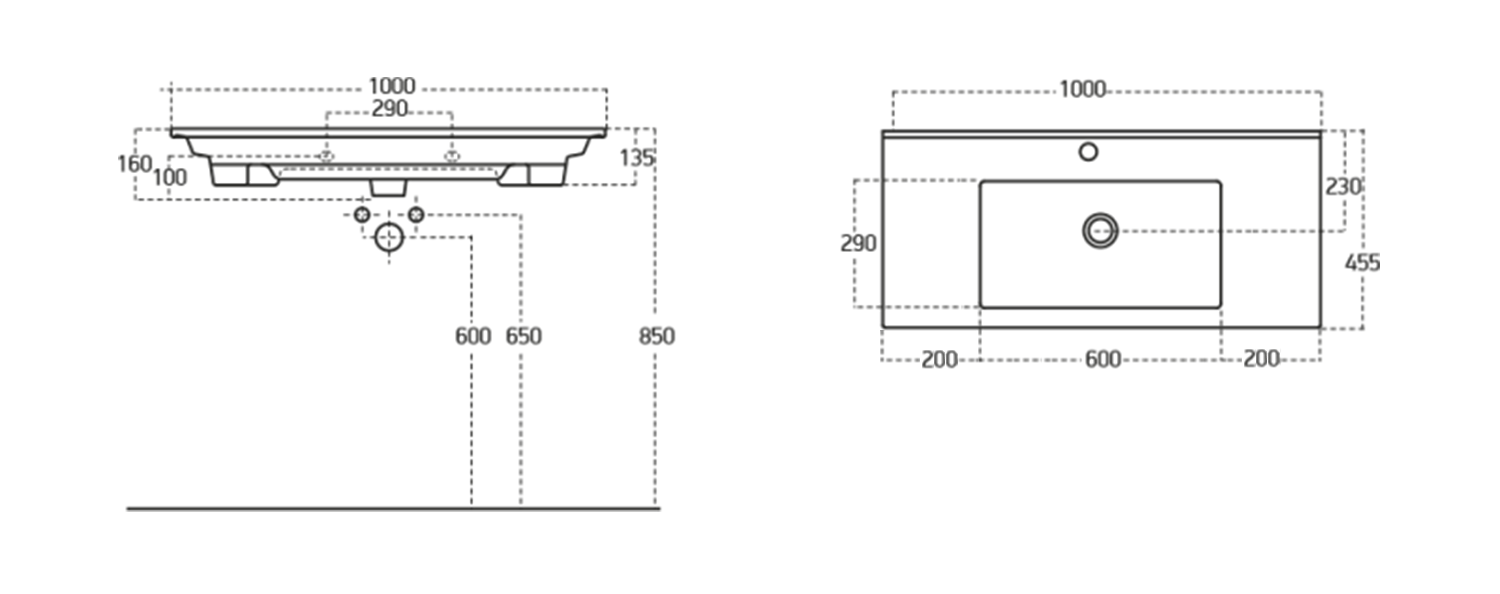 ZUNO 100 keramické umyvadlo nábytkové 100x45cm, bílá