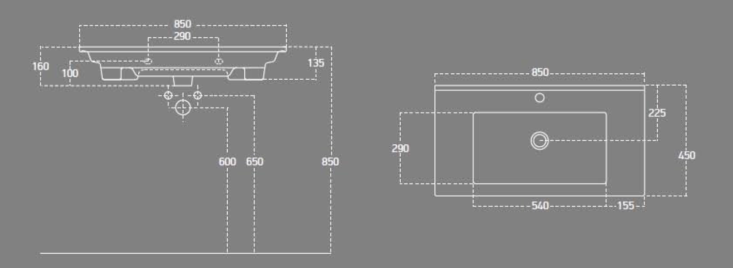ZUNO 85 keramické umyvadlo nábytkové 85x45cm, bílá